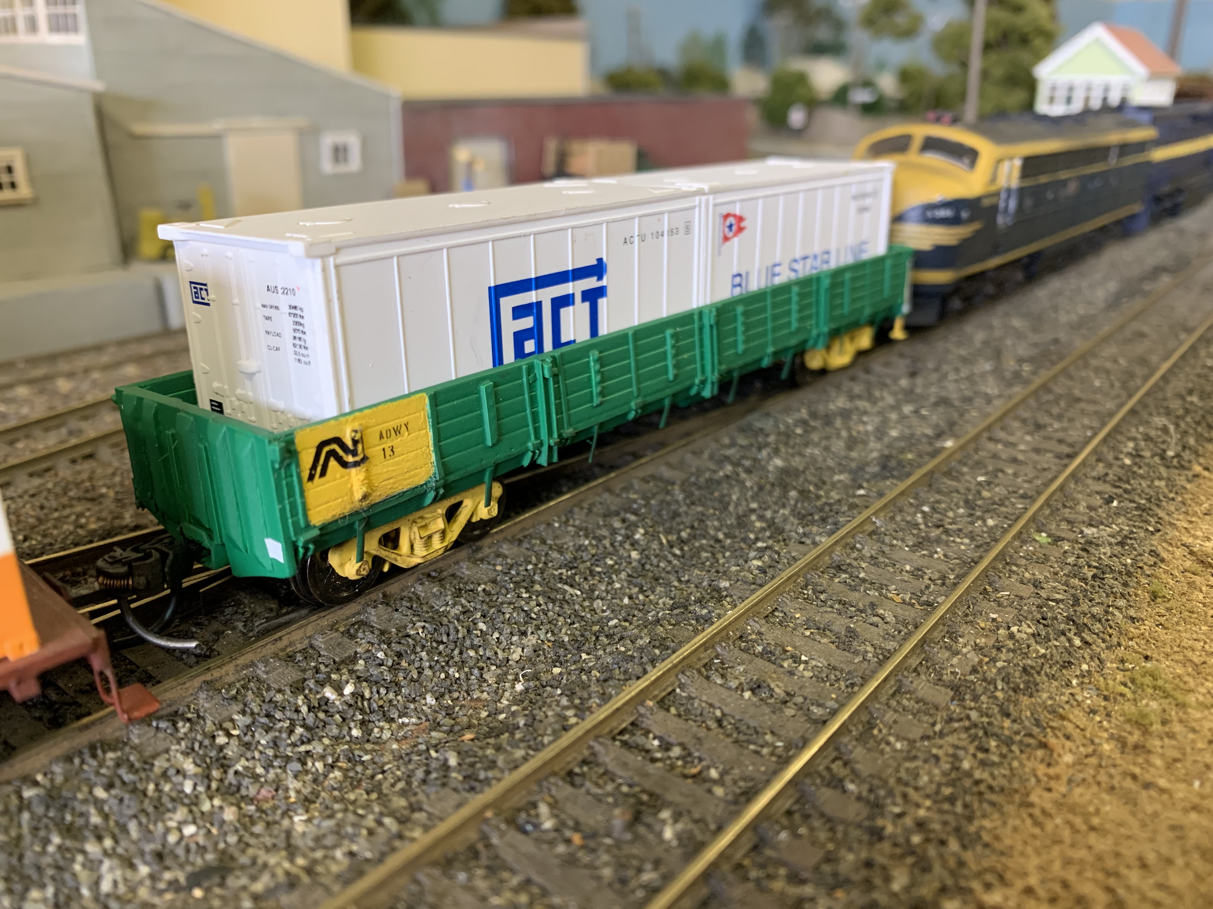 During the early 1980's both Australian National and the Victorian Railways were short of container wagons. This resulted in many open wagons including older wooden bodied wagons such as the AOWY being used to carry shipping containers on interstate express goods.