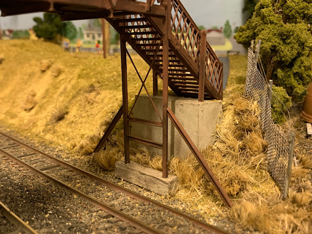 One of my favourite spots for railfanning was the footbridge adjacent to the Ballarat East Locomotive Depot. This bridge provides a pedestrian link between Dyte Parade and Scott Parade. Its made out of an old Hornby footbridge, with Evengreen styrene L angle, old rail and brass wire.